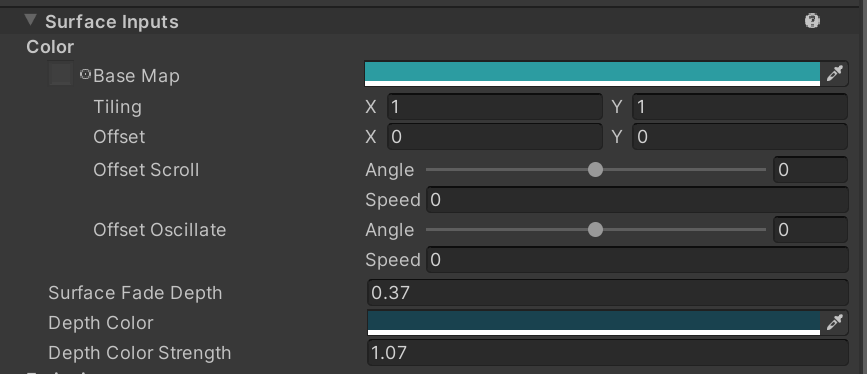Here is where you can alter the reflection and shininess of your liquid. A specular map and color controls the tint and strength of the reflection. Smoothness determines if the surface is rough/matte or smooth/polished.